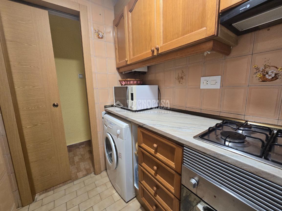 La vivienda consta de dos dormitorios dobles (antes tres habitaciones), salón con balcón exterior, cocina y baño completo con bañera.
